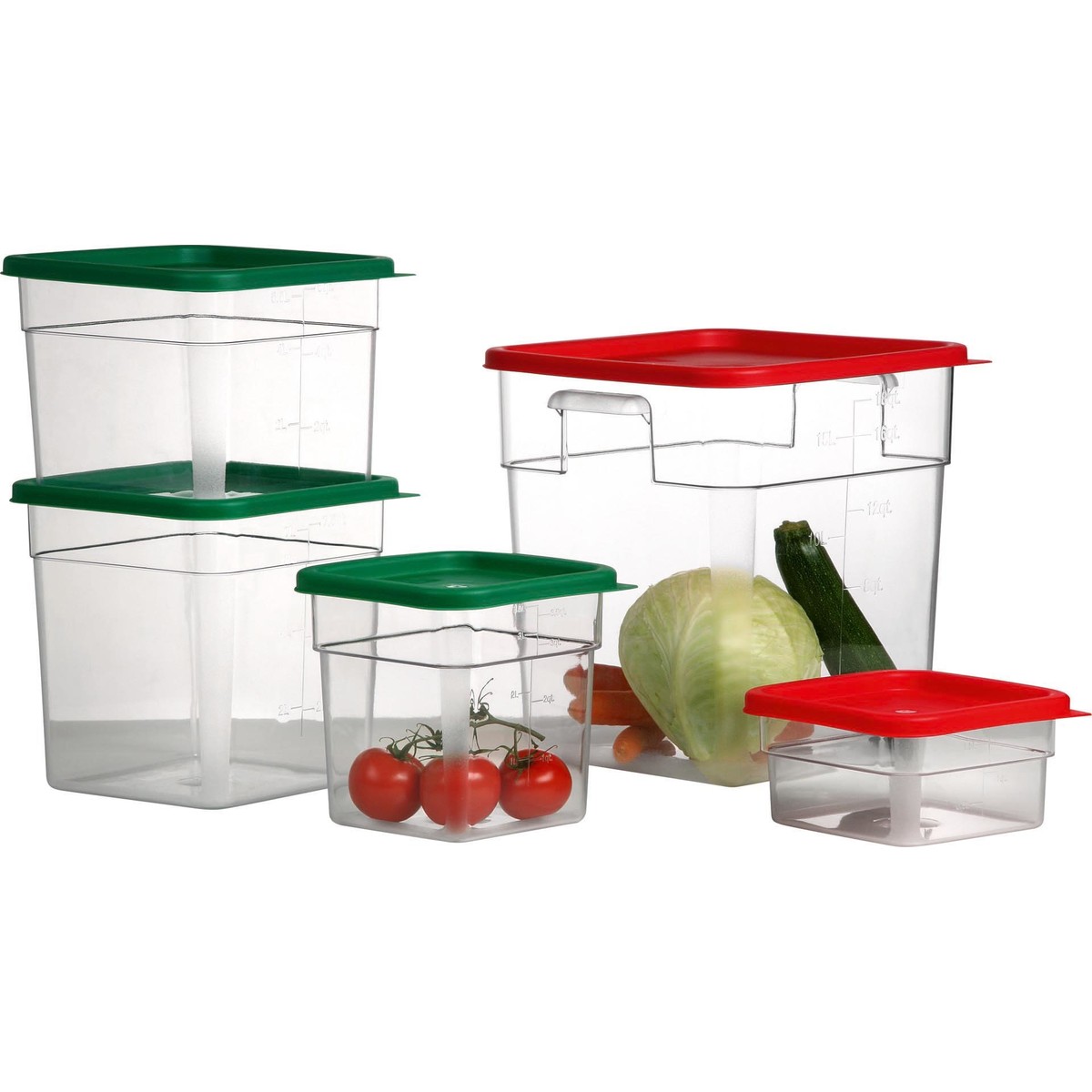 Polycarbonat mit seitlichen Griffen und Skala. Stapelbar. Passenden Deckel bitte separat bestellen.